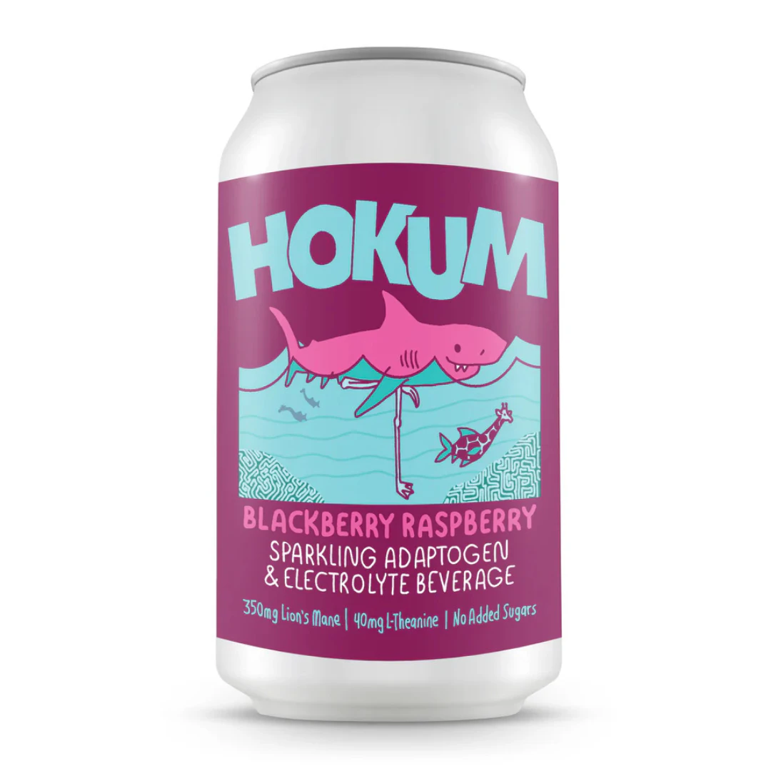 Hokum Functional Adaptogen Beverages! 40mg L-Theanine 350mg Lion’s Mane 529mg Total Electrolytes 13mg Magnesium No added sugars No alcohol - No THC