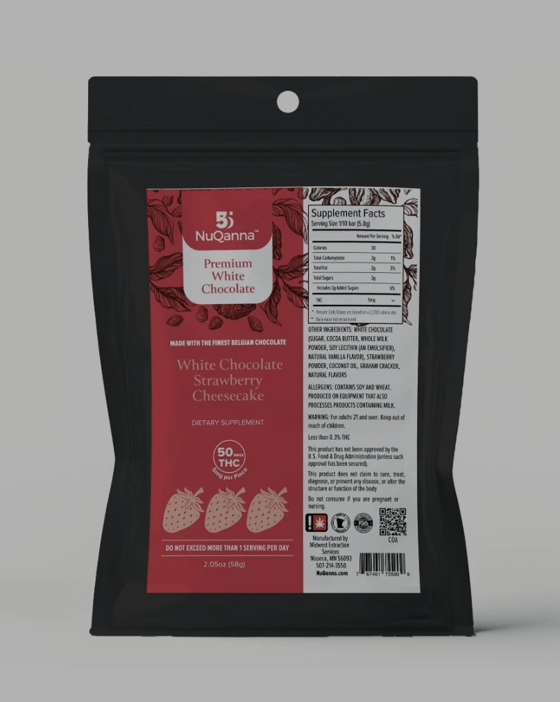 NuQanna Chocolates - White Chocolate Strawberry Cheesecake 5mg - 10ct